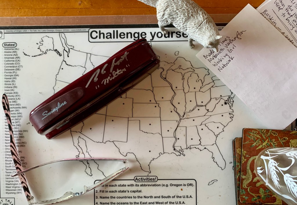 Bonus #1: A red Swingline stapler signed by “Milton” Stephen Root – one of my all-time favorite character actors who, if you don’t know his name, I guarantee you’ll recognize from seeing his face in no less than three of your favorite movies or shows. For example, he plays Gaston Means in ‘Boardwalk Empire, which is how I knew I wanted to include Means as one of the con artists in my book, A Century of Swindles: Ponzi Schemes, Con Artists & Fraudsters (Chapter 6: Ways and Means).